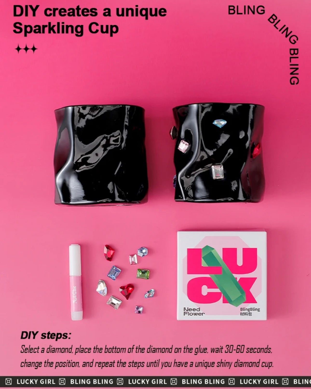 Our Lucky Girl Collection features elegant naturally shaped-sided ceramic jars with modern maximalist bling. Perfect addition to your home decor next to your ever growing collection of sonny angels or your photo framed memories on a mantle, nightstand, or coffee table.