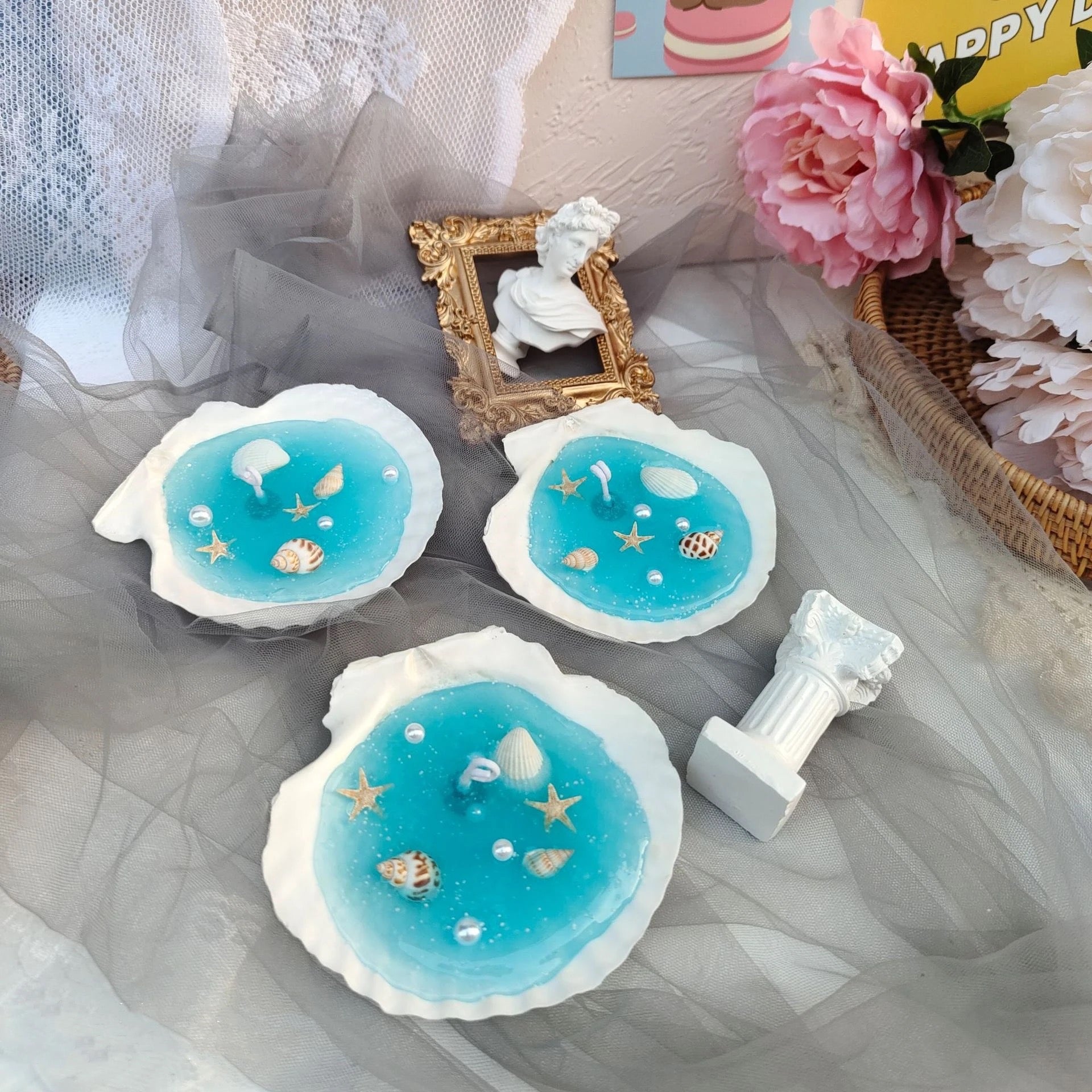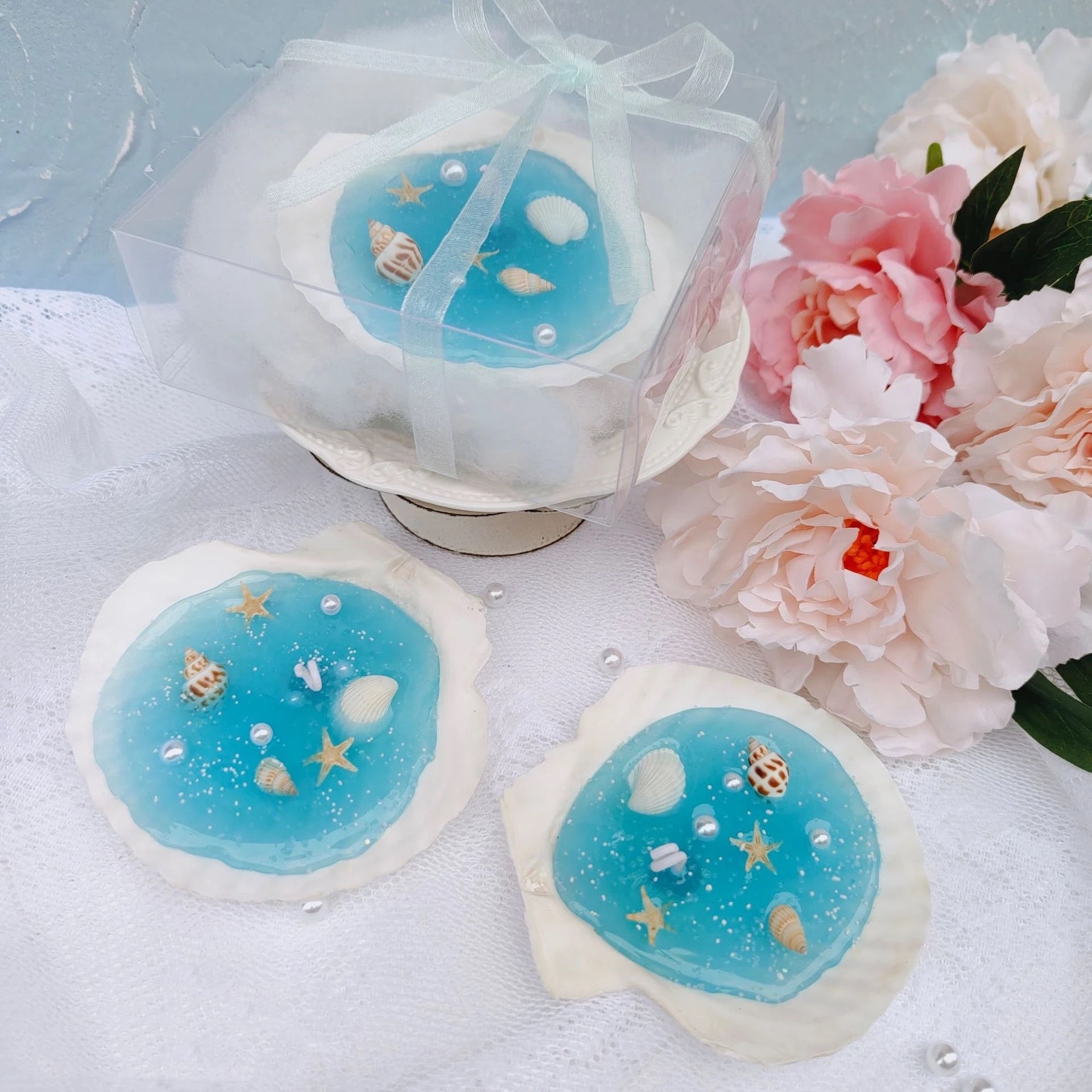 Luxury Handmade Beach Wedding SeaShell Candle Favors, Ocean Theme Blue Purple Pink Gel Candle in Transparent Box , Bridal Shower Favors, Baby Shower Favors